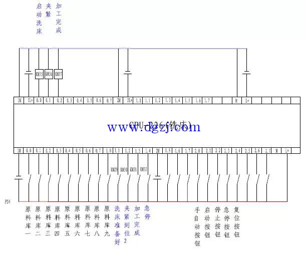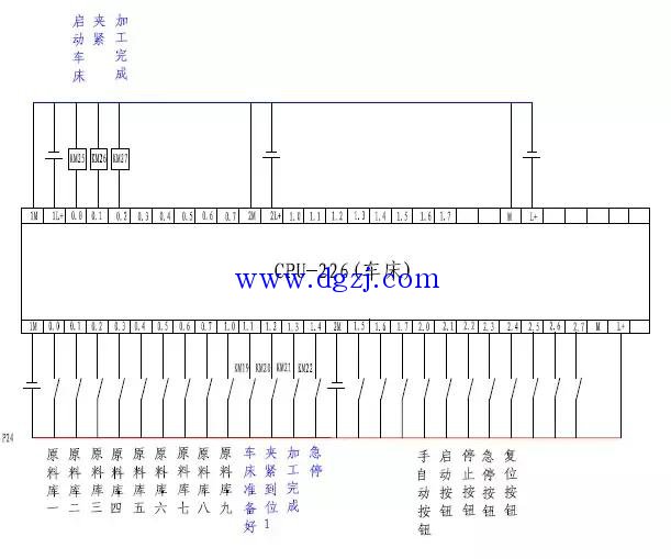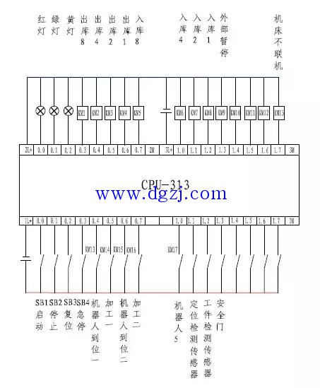 上图PLC采用西门子品牌,S7-300作为上位机,S7-200与机床通过I/O信号相连;S7-300与S7-200使用Profibus总线相连;S7-300与工业机器人使用I/O信号相连;工业机器人主体和控制器之间使用自带通讯电缆(直接接插)连接。