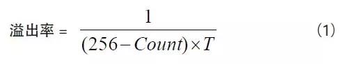 当定时器T1 用作波特率发生器时,通常选用定时初值自动重装的工作方式2( 注意:不要把定时器的工作方式与串行口的工作方式搞混淆了)。其计数结构为8 位,假定计数初值为Count,单片机的机器周期为T,则定时时间为(256 ?Count)×T 。从而在1s内发生溢出的次数(即溢出率)可由公式(1)所示:
