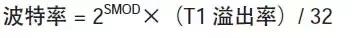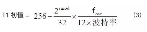 在实际应用时,通常是先确定波特率,后根据波特率求T1 定时初值,因此式(2)又可写为: