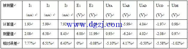 5、用直流数字电压表分别测量两路电源及电元件上的电压值,记录于下表。