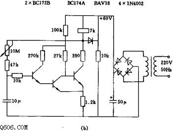 简介图a电路中有两级电路结构,其定时时间约为0.5~12s,图b有点~160s范围的定时时间。 变压器参数:铁芯:M42/15.7硅钢片 绕组:0.18mm铜漆包线路1200匝。