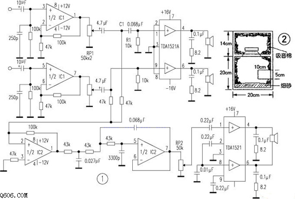 tda1521制作的漫步者2.1低音炮电路图