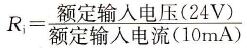 其中,Ii是PLC输入电流;Io是漏电流;R是旁路电阻;Ri是PLC的等效输入电阻。可以查PLC输入回路特性表得到,或者根据下列公式计算: