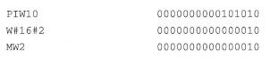 只对PIW10中第二个位信号进行处理,如果I1.0、第二个位信号为1,字相“与”的结果不为0,< >0导通,赋值M6.1为1。示例为LAD程序,可以转换为STL程序,在STL程序中使用BR位判断字逻辑结果。