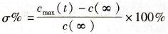 设动态过程中输出量的最大值为cmax(t),如果它大于输出量的稳态值c(∞),定义超调量为