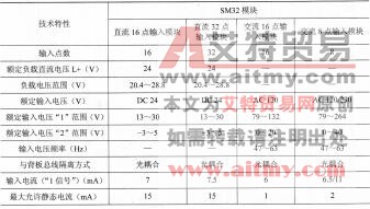 数字量输入模块SM321的技术特性如表1-14所示。模块的每个输入点有一个绿色发光二极管显示输入状态,输入开关闭合(即有输入电压)时,二极管点亮。