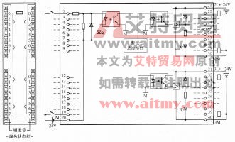 图1-13直流32点数字量输入模块的内部电路及外部端子接线图