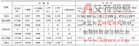 模拟量输入模块的模拟量值与模拟量之间的对应关系如表1-16所示,模拟量的上、下限(±100%)分别对应于十六进制模拟量值6COOH和9400H(H表示十六进制数)。
