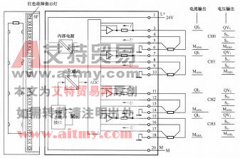 图1-21 AI 8×13位模拟量输入模块的内部电路及端子接线图