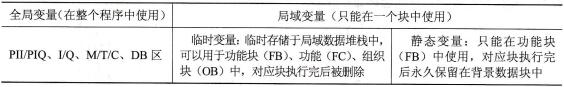 功能块的局域变量可分为5种,如表4-2所示。