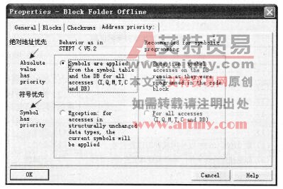 如果符号表中作了改变,在S7程序属性的对话框中可以设置当块被打开时是符号地址还是绝对地址具有优先级。在版本V5.0以下的STEP 7中,绝对地址总是具有优先级的。对于块调用命令CALL,绝对地址总是具有优先级的。