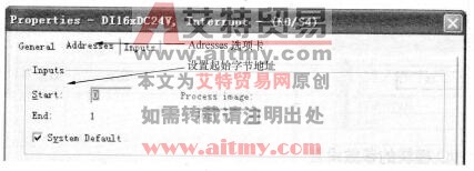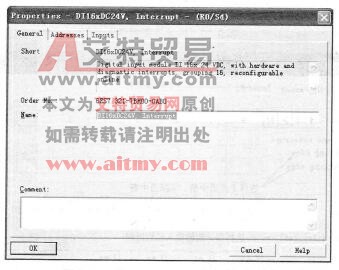 点击“Input’,选项卡,如图3-55所示。可以设置是否允许产生硬件中断(HardwareInterrupt)和诊断中断( Diagnostics Interrupt)。如果复选框中出现“√”表示允许产生中断。