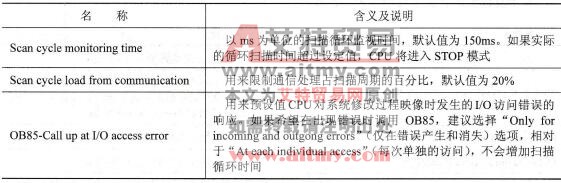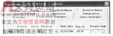 S7-300/400各种模块的参数用STEP 7编程软件编程软件来设置。在STEP 7编程软件的SIMATIC管理器中点击“hardware”(硬件)图标,进入“HW Config”(硬件组态)对话框中后,双击CPU模块所在的行,在弹出的“Properties”(属性)对话框中选择某一选项卡,便可以设置相应的属性。下面就以CPU313-2DP为例,介绍CPU主要参数的设置方法。