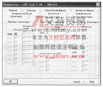在“Interrupt”选项卡中,可以设置硬件中断(Hardware Interrupt)、延迟中断(Time-DelayInterrupt)、DPVl (PROFIBUS-DP)中断和异步错误中断(Asynchronous Error Interrupts)的参数设置,如图3-43所示。