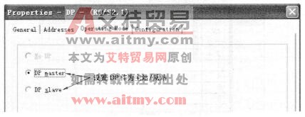在“Addresses”(地址)选项卡中,可以设置DP接口诊断缓冲区的地址,如图3-47所示,如果选择“System Selection”选项,可以由系统自动指定地址。在“Operation Mode”选项卡中,可以选择DP接口作DP主站(master)或DP从站(slave),如图3-48所示。
