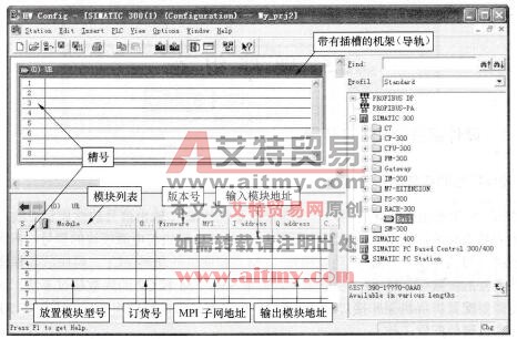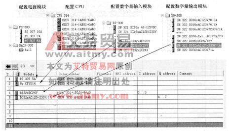 在PLC控制系统设计的初期,首先应根据系统的输入/输出信号的性质和点数,以及对控制系统的功能要求,确定系统的硬件配置。例如CPU模块与电源模块的型号,需要哪些输入输出模块(即信号模块SM)、功能模块(FM)和通信处理器(CP)模块,各种模块的信号和每种型号的块数等。对于S7-300来说,如果SM、FM和CP的块数超过8块,除了中央机架外还需要配置扩展机架和接口模块(IM)。确定了系统的硬件组成后,需要在STEP 7编程软件中完成硬件配置工作。