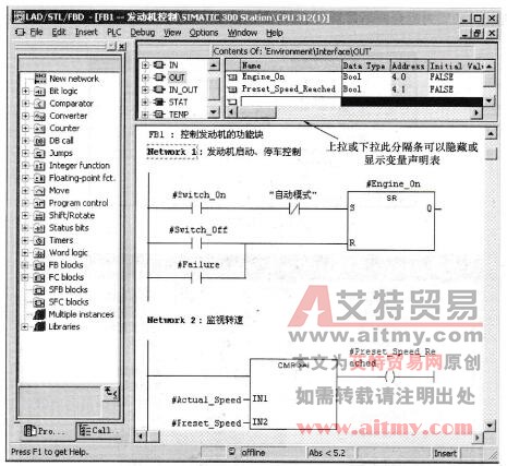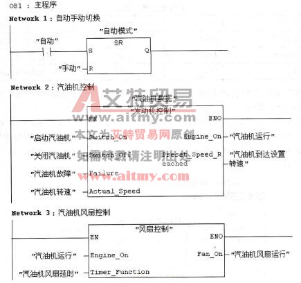 下面以发动机控制系统的用户程序为例,介绍生成和调用功能块和功能的方法。